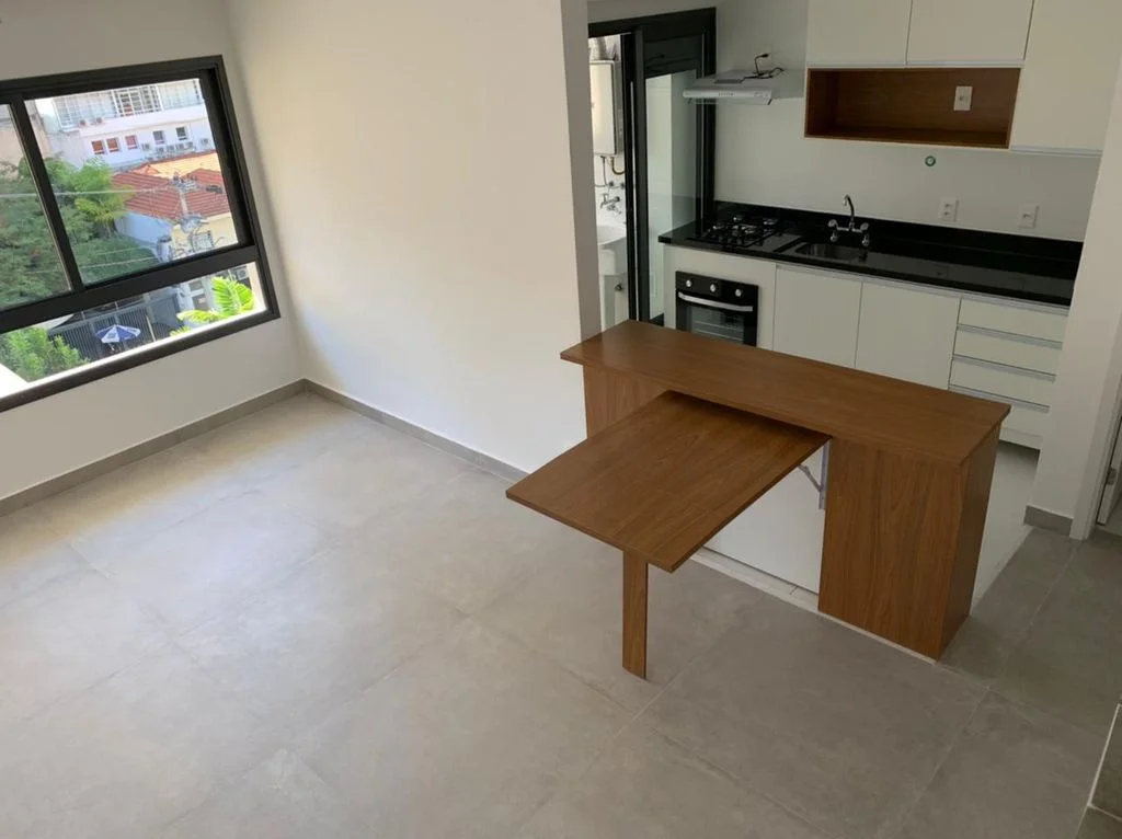 O duplex está localizado no bairro Vila Madalena tem 79 metros quadrados com 2 quartos sendo 2 suítes e 2 banheiros